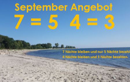 Wir schenken Ihnen 2 bzw. 1 Nacht bei uns auf dem schönen Ostseecamp Lehmberg. Genießen Sie die schönen Septembertage direkt am Meer.